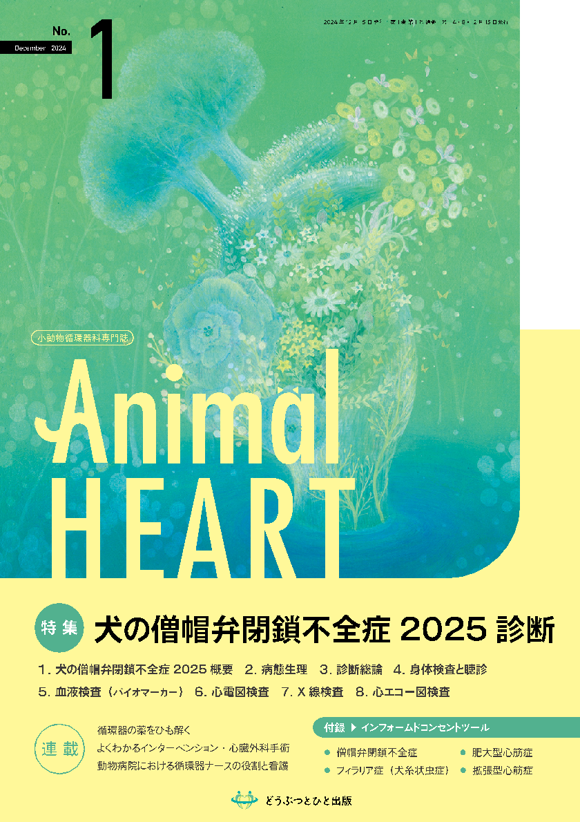 記念すべき第1号の特集は 「犬の僧帽弁閉鎖不全症 2025 診断」